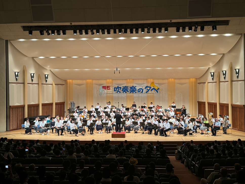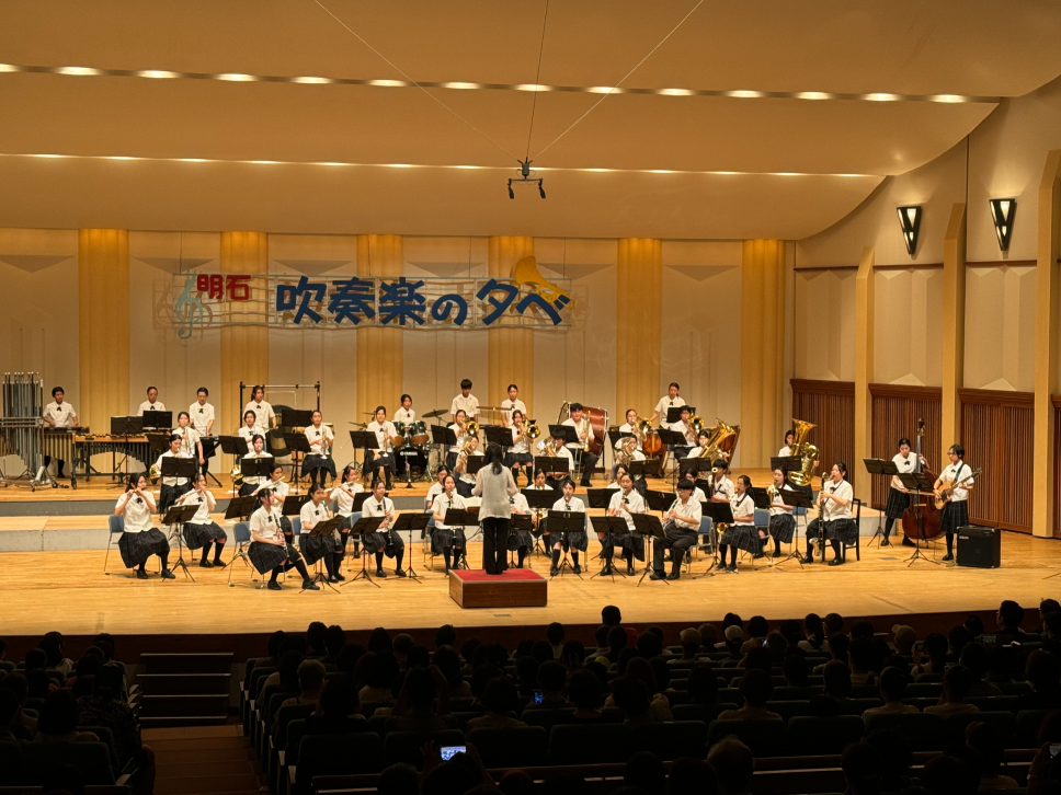 当連盟は、明石の教育・文化の発展を目的に昭和48年に設立され、市内中学校、高等学校吹奏楽部(音楽部)、小学生と一般の吹奏楽団、計34団体が加盟しています。明石吹奏楽の夕べ(明石市芸術祭、8月)、明石市吹奏楽祭(10月)、アンサンブルコンテスト(12月)、ふれあいコンサート、楽器クリニックなど年間を通じて活動しています。